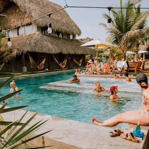 This beachfront hostel is all about connection through surf, sustainability, and shared experiences. Guests can join turtle releases, take part in community projects, and unwind by the pool or rooftop restaurant with ocean views. With A/C dorms, private rooms, and a welcoming vibe, The Driftwood Surfer is where travelers can slow down and feel part of a community.